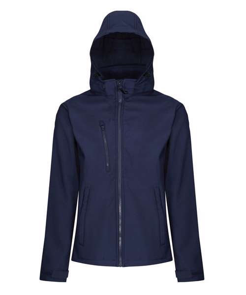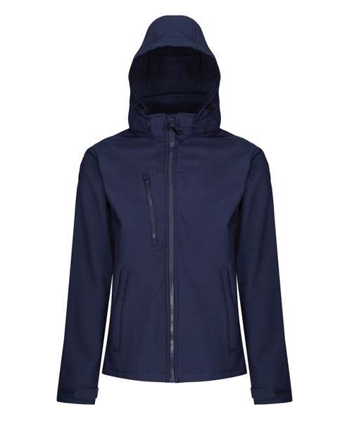 Warm-backed woven softshell XPT waterproof and breathable 3 layer membrane fabric. Fully printable outer fabric, with wind resistant inner membrane. Detachable softshell fabric hood, adjustable shock cord at face and cuff adjusters. 2 zipped lower pockets and 1 zipped chest pocket. .