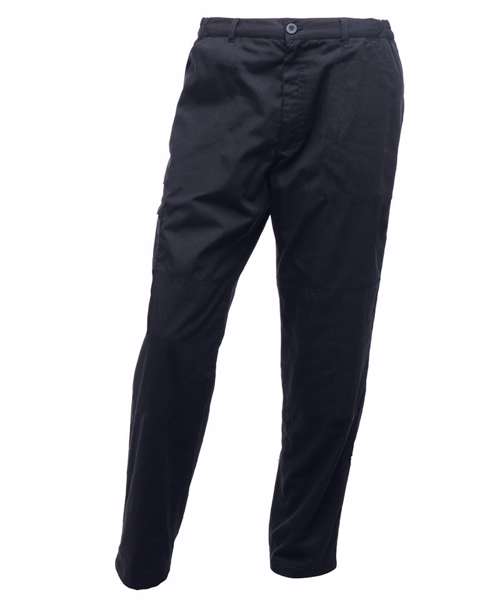 Hardwearing polycotton fabric with water-repellent coating. Multi pocket design with 7 pockets and a D-ring on waistband plus a hammer loop on right leg. Part elasticated waistband and triple stitched seams with reinforced crotch. Kneepad pockets compatible with Regatta kneepads.