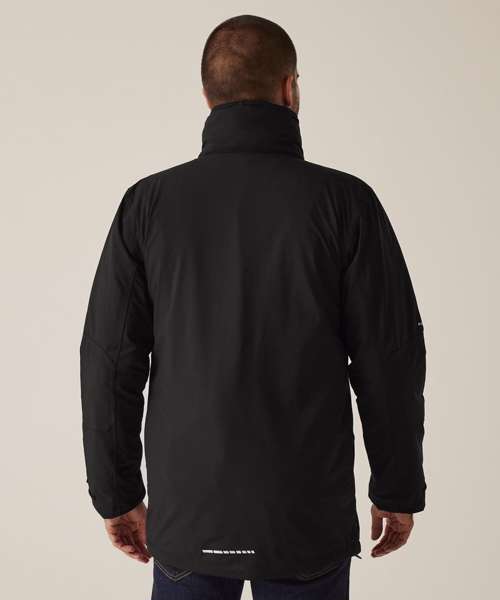 Waterproof and breathable Isotex 10,000 Stretch Ripstop fabric on outer garment, conforms to EN343 3:2, sealed seams and a DWR (Durable water-repellent) finish for all-weather protection. RFID protection on the chest pockets for added security, and fully Insulated inner jacket with Thermo-reflect lining panel for heat retention. Packaway hood that conceals away into collar, 2 zipped lower pockets and 2 zipped waterproof chest pockets. Waterproof centre front zip. Concealed zip in lining for embroidery access, and shock cord adjusters at face and hem. Reflective details on sleeves and back. .