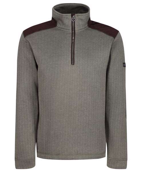 The Holbeck half-zip fleece from Regatta Professional. With strategic overlays and warming jacquard fleece fabric, it features a herringbone-effect to keep you cosy and on trend. The country vibe makes it perfect for working on country estate or farm, while the corduroy shoulder adds to the style and elbow overlay panels provide lasting wear.