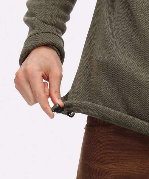 260gsm herringbone-effect jacquard fleece. Corduroy shoulder and elbow overlay panels. Half-zip. Self-fabric cuffs. Reach certified. Ethical Trading Initiative certified.