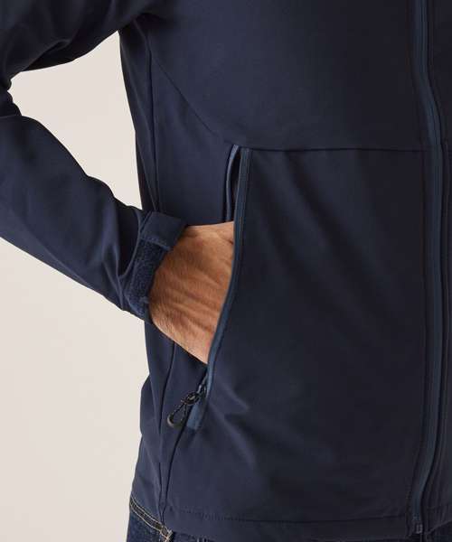 Innovative woven ultra stretch fabric with a DWR (Durable water-repellent) finish. Highly durable and resilient performance fabric, processed in an eco-friendly way. Clean, modern, lightweight design. 2 lower zipped pockets. Reflective details on the arms and CB hem. Grown on technical hood with concealed adjusters at the face. Adjustable Hem.