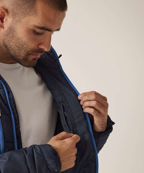 100% polyester ripstop fabric with recycled polyester high warmth padding. Warmloft performance technology insulation. Multiple pockets including two zipped lower pockets, one chest pocket and one inner pocket.