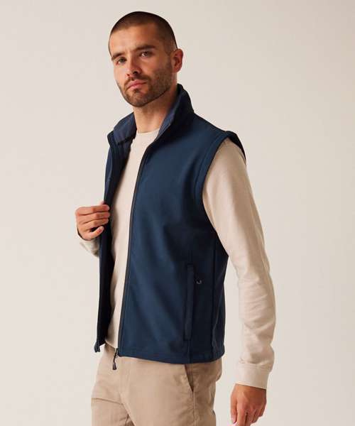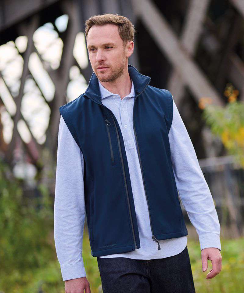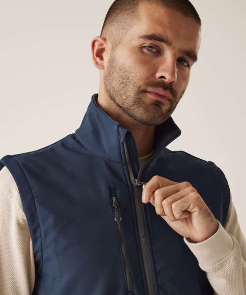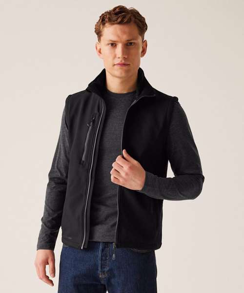 Made from 100% recycled softshell. Fully printable bodywarmer is water-repellent and wind-resistant. Quick-drying, super-soft material.