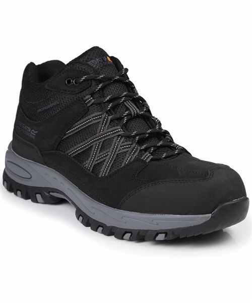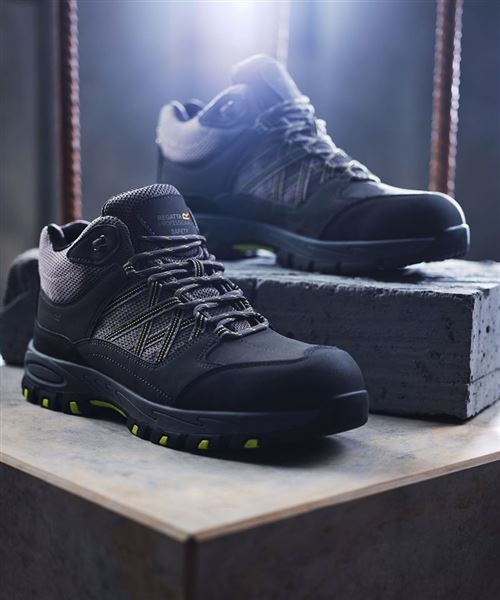 Stay protected in Regatta Professional boots. The boots come with safety features including an oil-resistant outsole to prevent slips and a water-resistant upper to keep rain at bay. A steel toe cap completes the boots. Conforms to EN20345: 2011 - SB