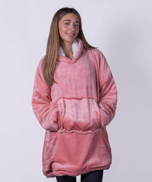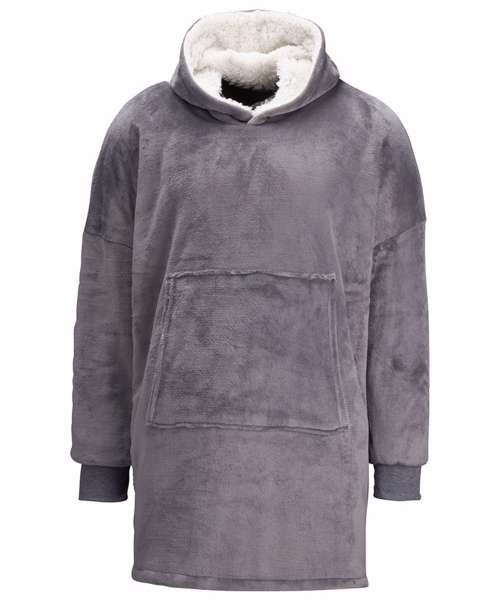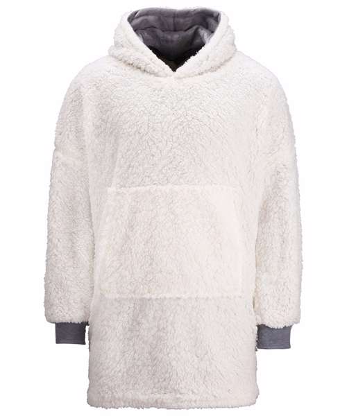 Super-soft microfleece hoodie with snuggly warm sherpa lining. Oversized – one size fits most – with large pocket to keep your hands as warm as toast. Reversible – choose your favourite way!