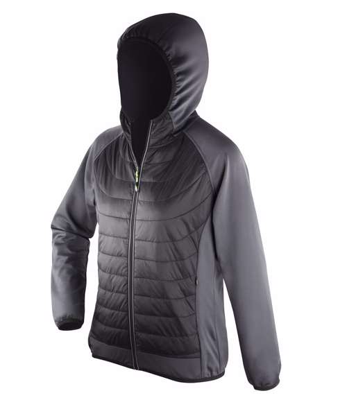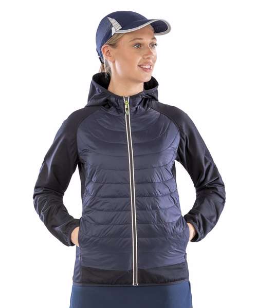 Showerproof, Breathable. Padded body feature; Anatomically curved on women's. Super stretch fabric hood and hems. Invisible zip side pockets. Bound cuff, hem and hood. Reflective detail. Thumbhole cuff. Integral hood. Quick dry. Virtually weightless, ideal layer garment. Thumbholes help top stay in place. Articulated sleeves allows full motion. Attractive padded body using faux down. Ventilated performance, lightweight insulation. Super-Stretch fabric and ergonomic seams allow natural movement.