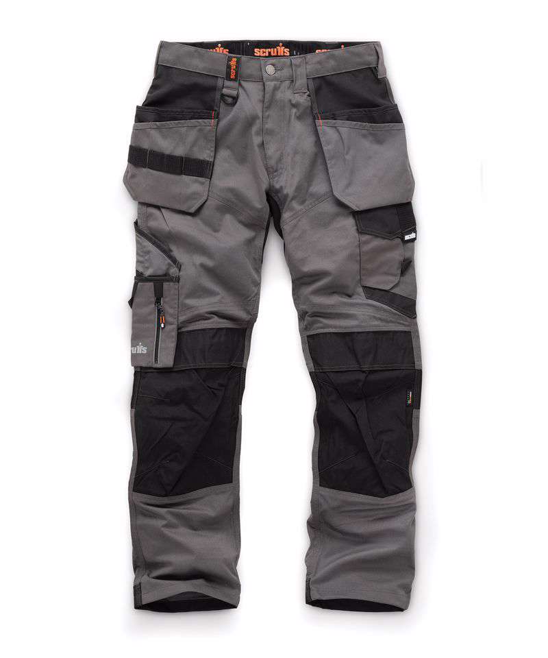 Durable work trousers made from heavy-duty twill fabric with stretch panels for comfort and flexibility. Two-layered reinforced seat for long-lasting performance. Tapered fit – wider in the thigh and tapered at the hem for a modern and comfortable fit. Abrasion-resistant, top-loading Cordura® knee pockets with two positions for comfort and durability. Hard-wearing, abrasion-resistant hem and pocket reinforcements. Easy-access holster pockets with tool loops for tool and accessory storage. Cargo pockets with zipped section, rule pocket, mobile phone pocket, hammer loops and D-ring. Certified Sedex.