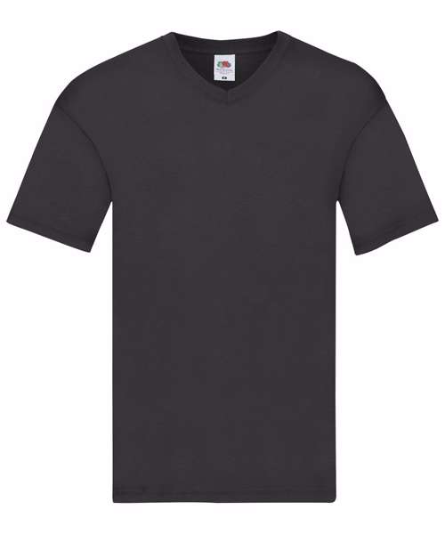 Rib v-neck. Self-fabric back neck tape. Fine knit gauge for enhanced printability.