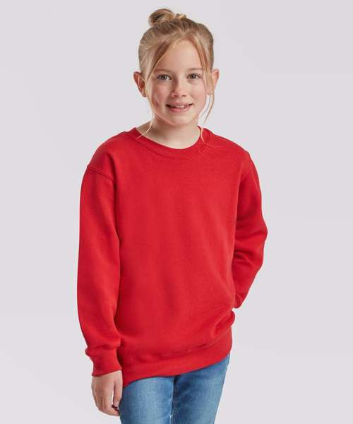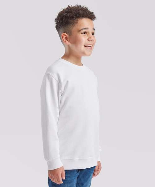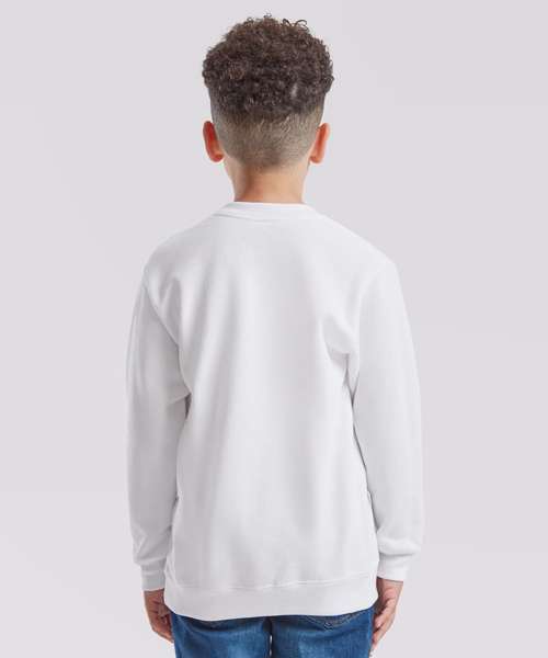 The kids classic set-in sweat is suitable for any kind of occasion, with a 100% cotton face ensuring perfect printing and embroidery results and a range of colours to choose from. Single Jersey shoulder-to-shoulder taping and cotton/Lycra® neck, waist and cuff ribs provide everyday comfort.