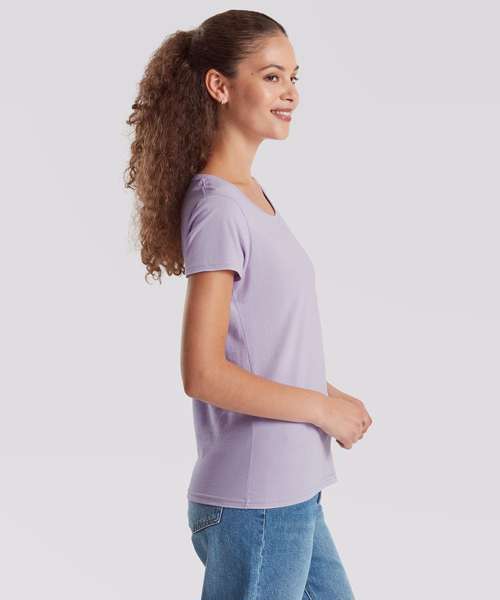 100 % combed ringspun cotton. Soft hand feel. Shaped side seams for a feminine fit. Performs at 60 degree wash. Crew neck with cotton/Lycra® and twin-needle stitching. Self-fabric shoulder-to-shoulder taping.