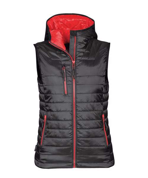 STORMTECH D/W/R durable water-resistant outer shell. Quilted body with ultra soft liner. Centre front vilson zipper with contrast zipper teeth. Attached hood. Adjustable hem. Brushed tricot hand warmer pockets. Zippered pockets. Chin saver. Internal full-length storm flap. Inside pocket. Embroidery access.