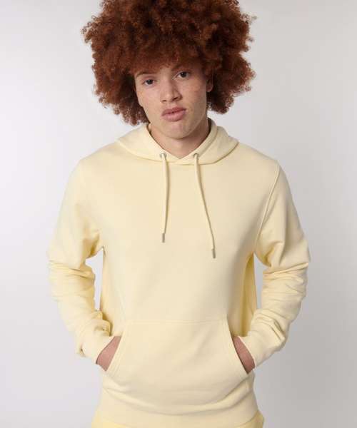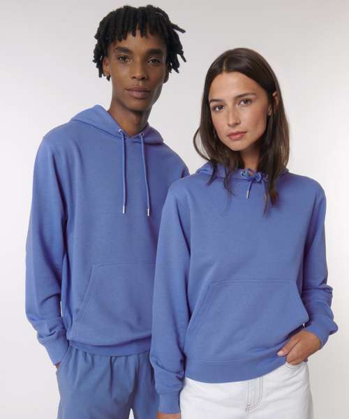 Unisex medium fit hoodie sweatshirt. Set-in sleeve. Double-layered hood in self-fabric. Round drawcords in matching body colour with closed metal tipping.
