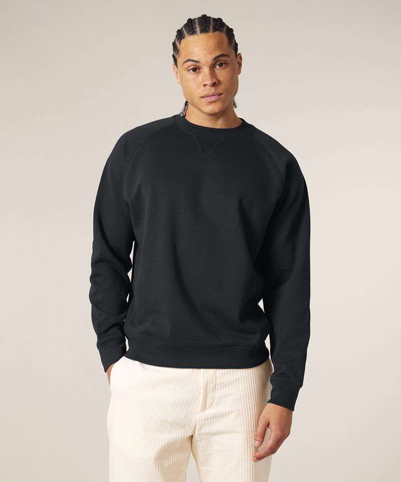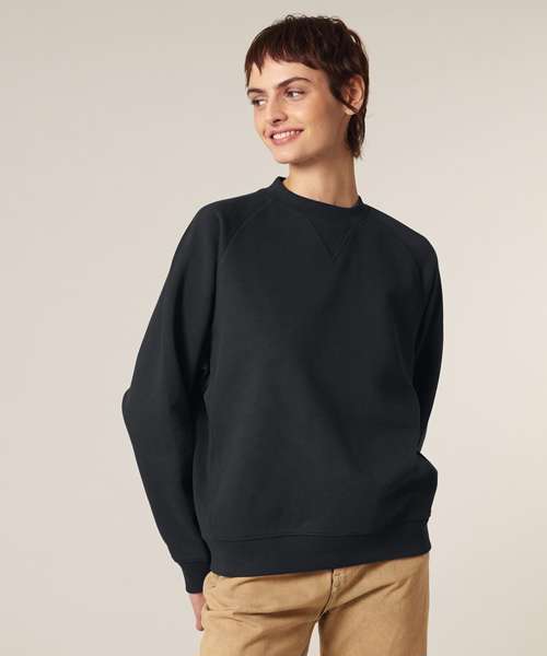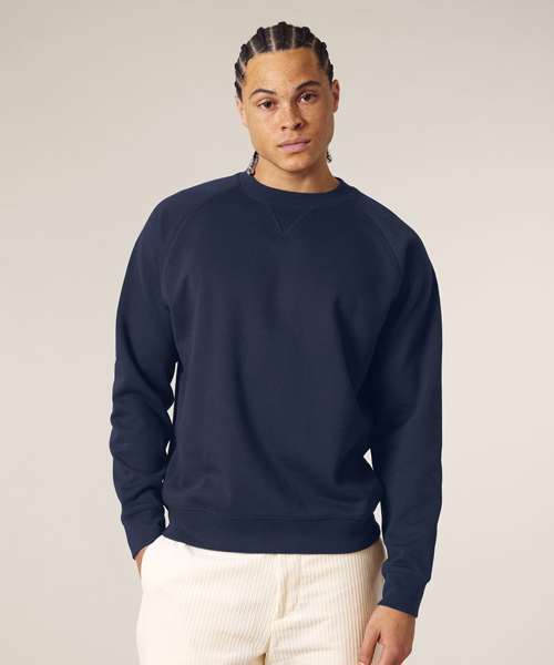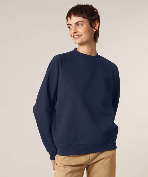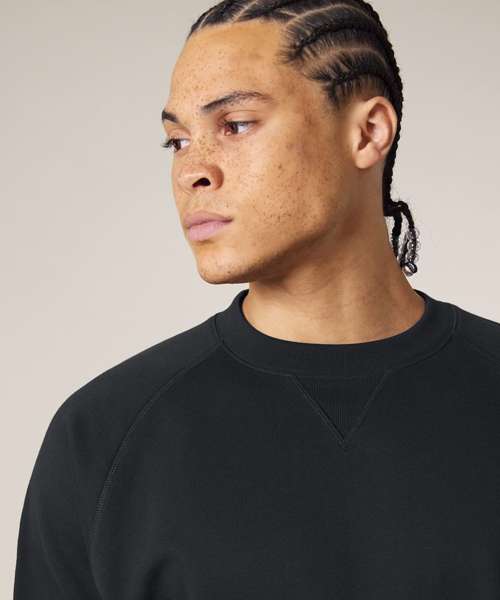 Premium, unisex, relaxed raglan crew neck sweatshirt in 100% organic cotton, 400gsm. Inspired by heritage American sportswear styles. Excellent printability.