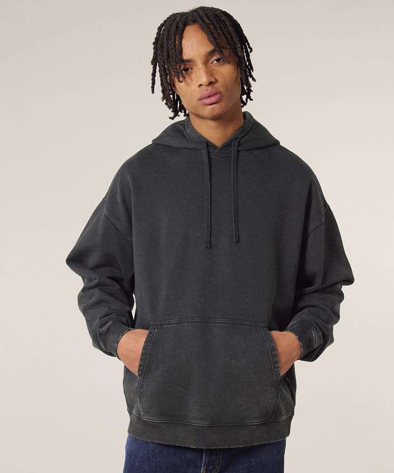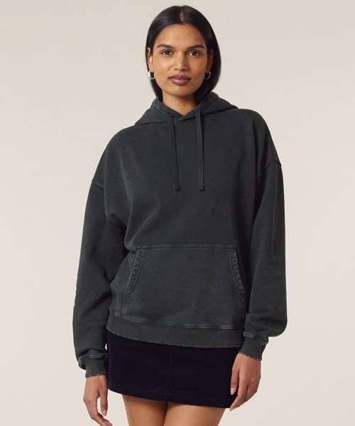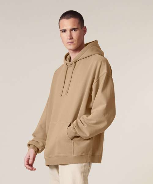 Premium, oversized, garment-dyed hoodie sweatshirt in 100% organic cotton, 350gsm. Streetwear-inspired fit and details. On-trend colours. Excellent printability.