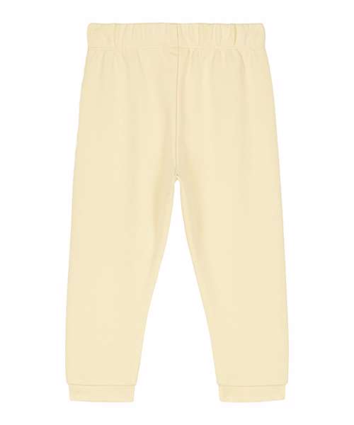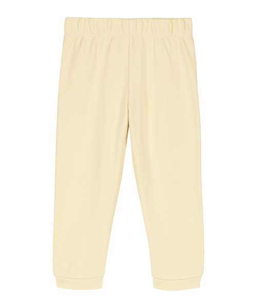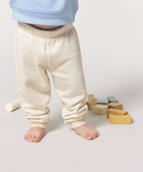 The iconic baby jogger pants. Medium fit. Self-fabric, elasticated, grown-on waistband. Narrow twin-needle at waistband base. No side seam for extra comfort. 1x1 rib at bottom leg cuff.