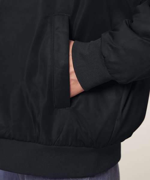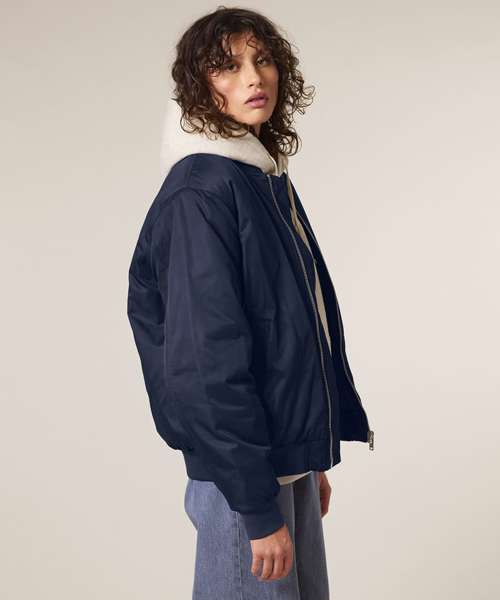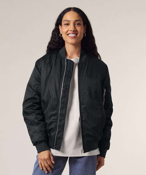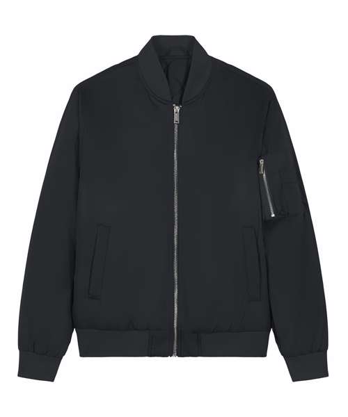 Premium unisex bomber jacket in 100% recycled polyester. Timeless, versatile style in a medium fit. Improved padding and decoration results. Ideal for music merchandise.