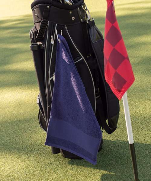 Heavyweight golf towel with deep pile and excellent absorbency. Featuring a wide border, perfect for personalisation. Finished off with a metal rivet.
