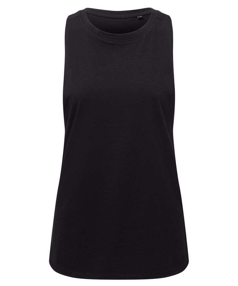 Crew neck tank top. Organic cotton. Deep-drop armholes with racerback. Curved hem detailing. We recommend using block out vinyl and inks.