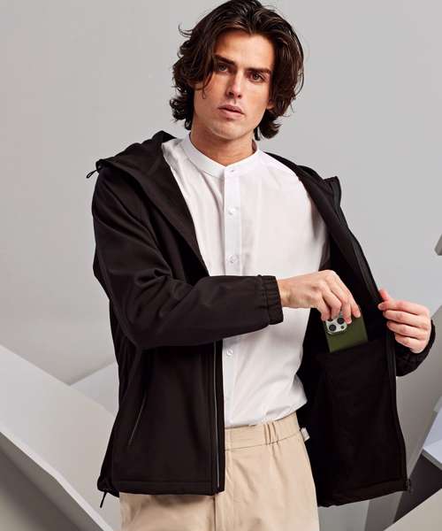 Reliable 2-layer bonded softshell jacket with hood. Full-length zip with storm flap and chin guard. Three-panelled hood with adjustable toggles. Two front zipped pockets. Elasticated cuffs. Raglan sleeves. Shaped to fit. Inner hem with adjustable toggles. Showerproof. Windproof. Two inside pockets. Easy re-label system. Product contains no branded neck label. Removable Kimble or looped garment tags. Inner seam label holds important product information on one label, with a second label containing brand information which can be cut away.