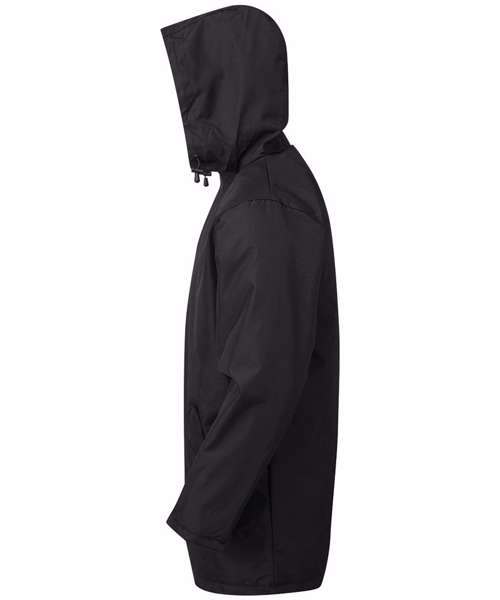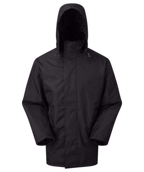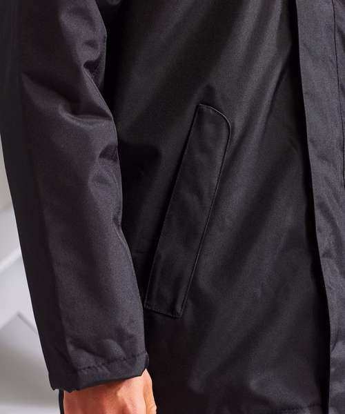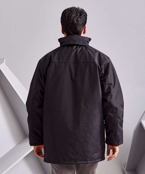 Warm and versatile parka jacket. Water resistant. Wind resistant. Warm polyfill quilted lining. Concealed adjustable storm hood. Full zip with storm flap. Snug, fleece lined collar with chin guard. Storm cuffs. Two zippered front pockets. Two interior pockets. Decoration flexible concealed interior zip for decoration access. Easy re-label system. Product contains no branded neck label.* Removable Kimble or looped garment tags. Inner seam label holds important product information on one label with a second label containing brand information which can be cut-away.